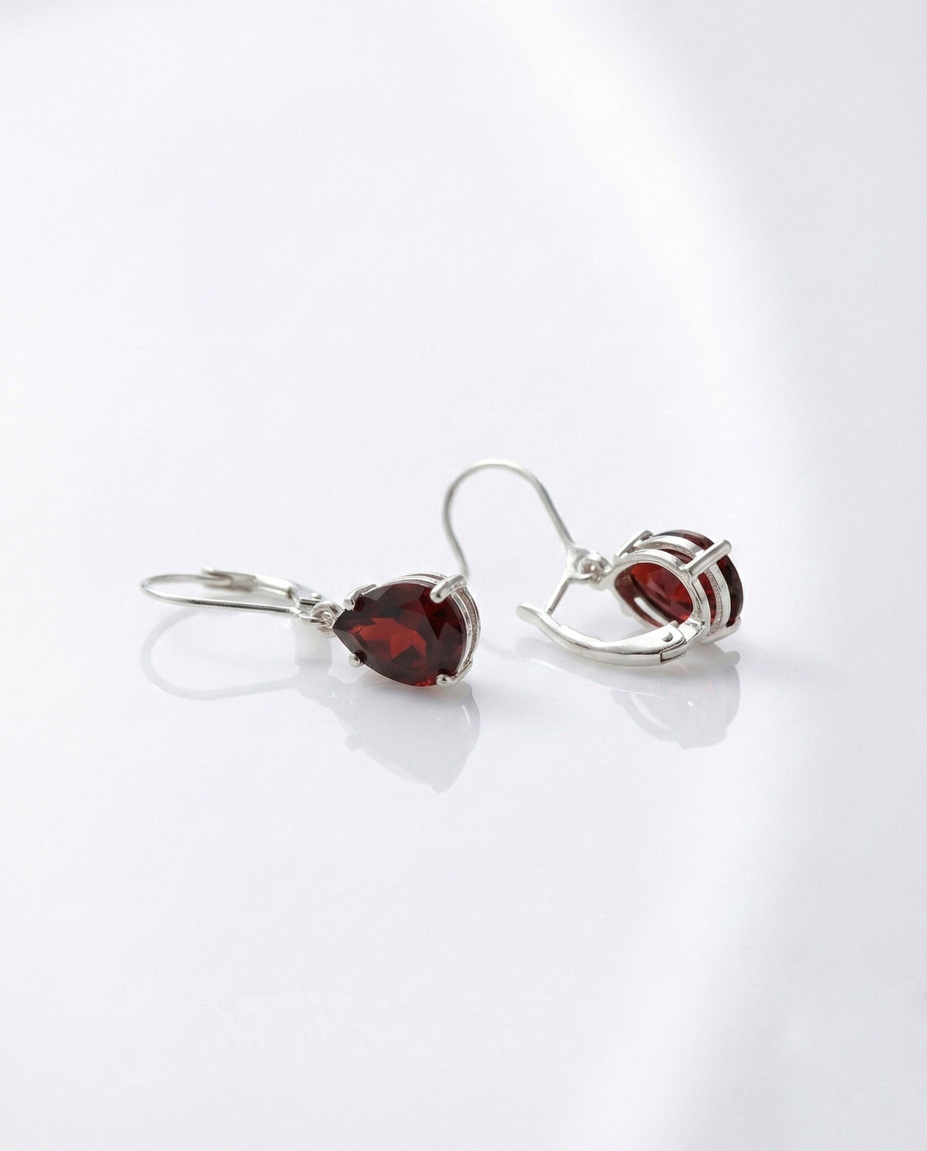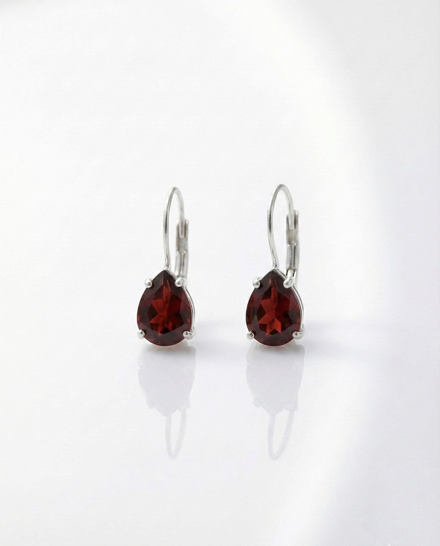 "Simple yet stunning, these drop earrings feature a beautiful pear-shaped Deep Red stone that adds a touch of romance to any look. Set in a polished silver-tone frame with a secure lever-back clasp, they are lightweight and comfortable enough for everyday wear."